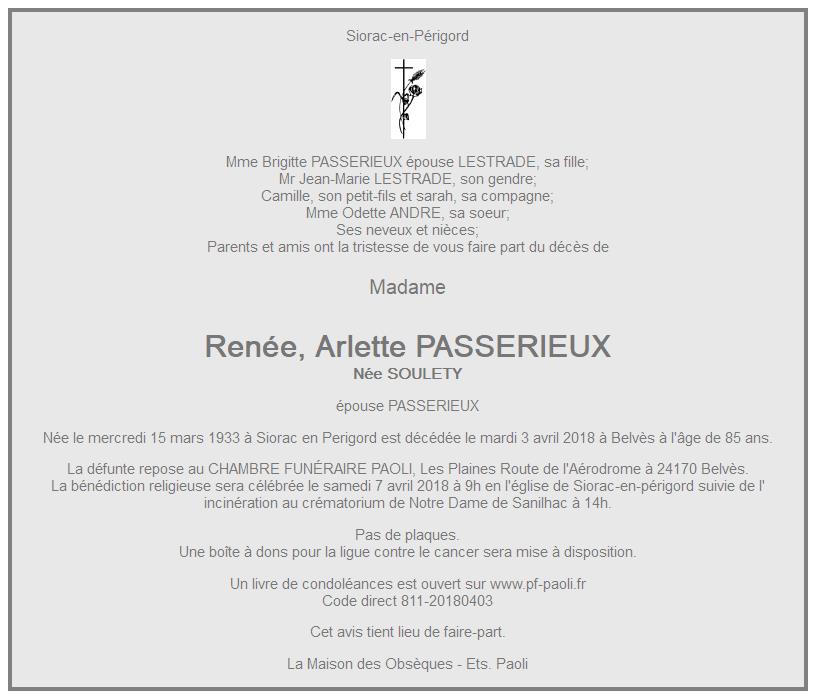 de Madame Renée, Arlette PASSERIEUX née SOULETY