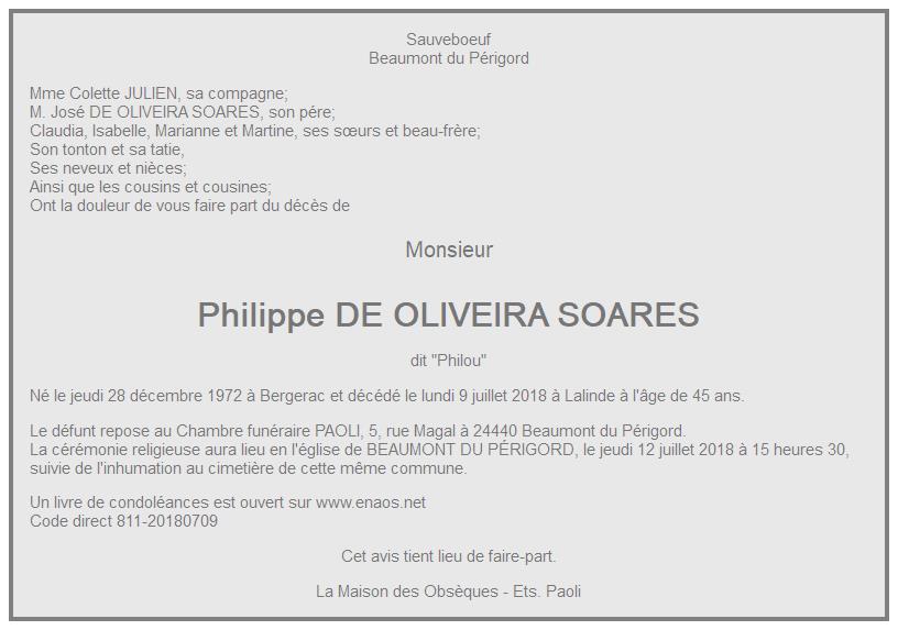 de Monsieur Philippe DE OLIVEIRA SOARES