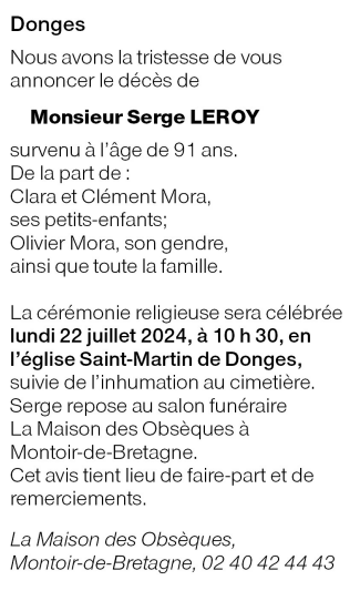 Cet espace « condoléances » est dédié à la mémoire de Monsieur Serge LEROY.