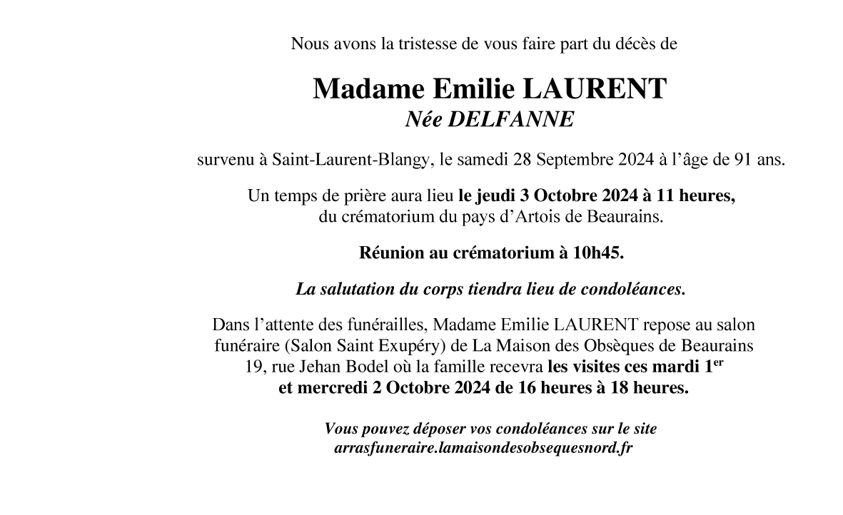 Cet espace « condoléances » est dédié à la mémoire de Madame Émilie DELFANNE.