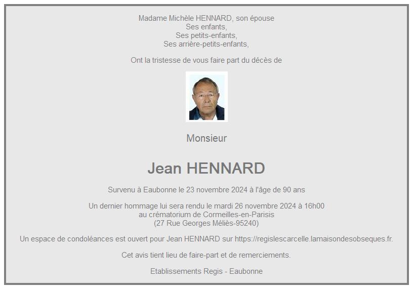 Cet espace « condoléances » est dédié à la mémoire de Monsieur Jean HENNARD.