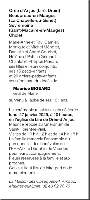 Décédé à Varades (44370) le jeudi 23 janvier 2025