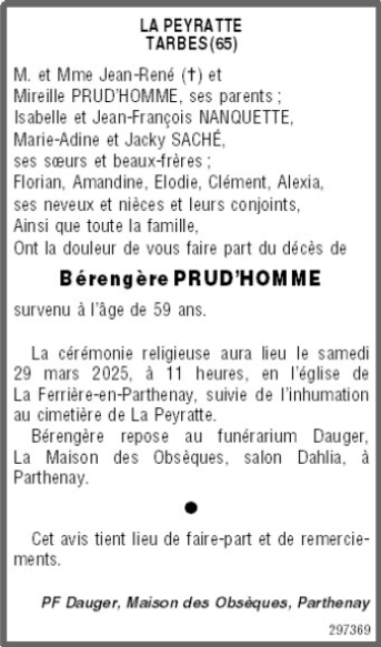 Cet espace « condoléances » est dédié à la mémoire de Madame Bérengère PRUD'HOMME.
