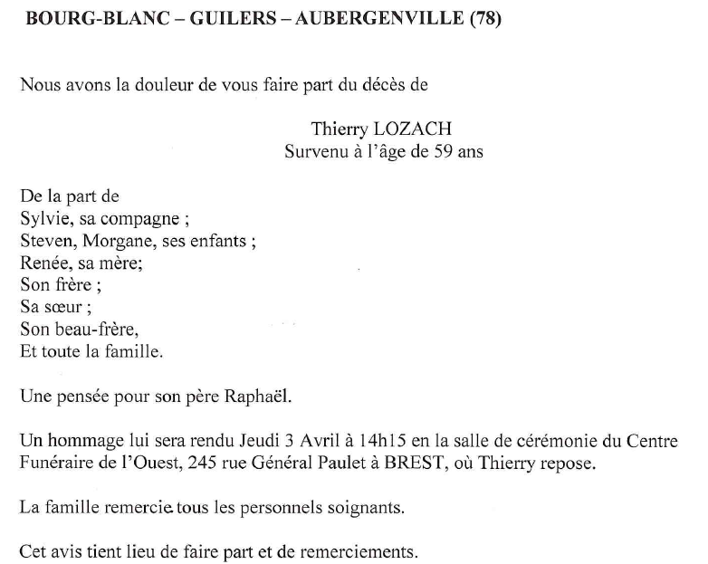 Cet espace « condoléances » est dédié à la mémoire de Monsieur Thierry LOZACH.