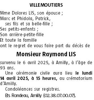 de Monsieur Raymond LIS