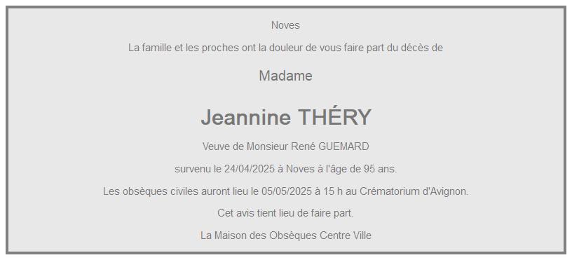 Décédée à Noves (13550) le jeudi 24 avril 2025