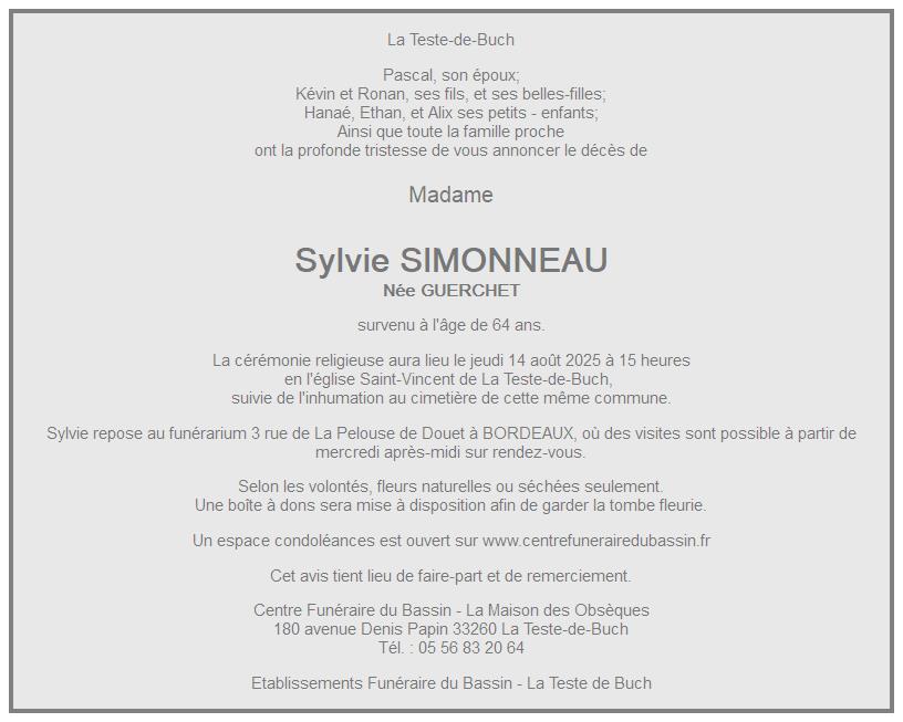 de Madame Sylvie SIMONNEAU née GUERCHET
