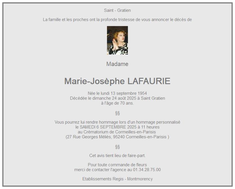 Cet espace « condoléances » est dédié à la mémoire de Madame Marie-Josèphe LAFAURIE.