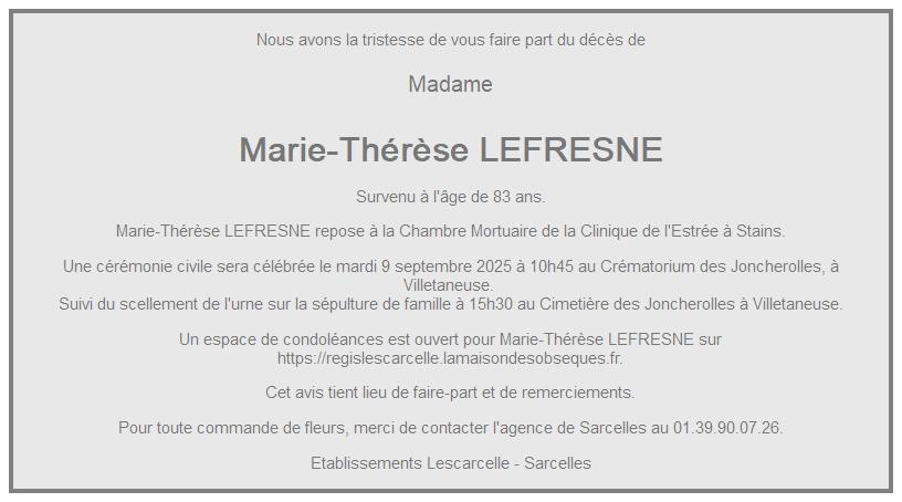 de Madame Marie-Thérèse LEFRESNE