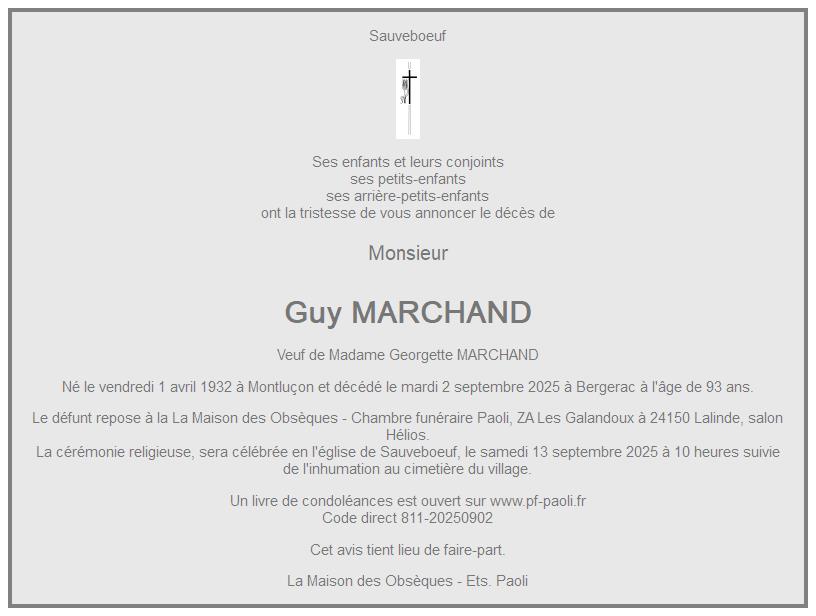Cet espace « condoléances » est dédié à la mémoire de Monsieur Guy MARCHAND.