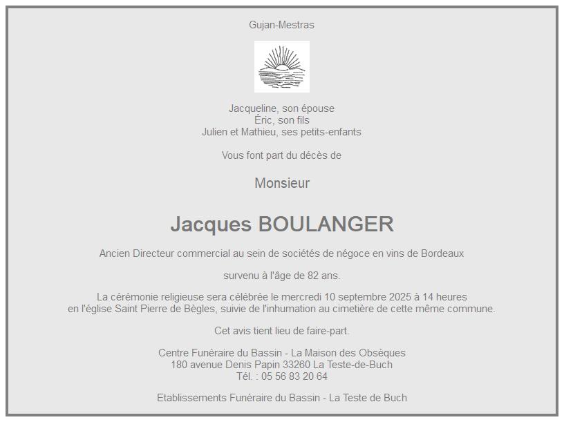 Cet espace « condoléances » est dédié à la mémoire de Monsieur Jacques BOULANGER.