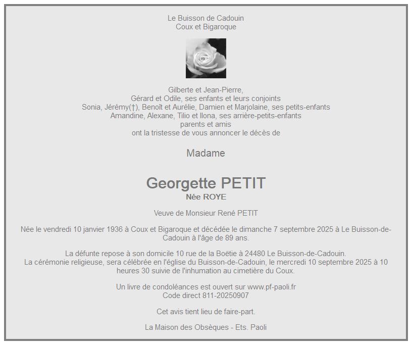 de Madame Georgette PETIT née ROYE