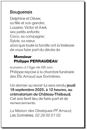 Cet espace « condoléances » est dédié à la mémoire de Monsieur Philippe PERRAUDEAU.
