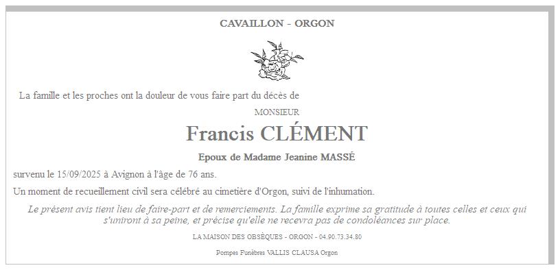 de Monsieur Francis CLÉMENT