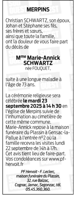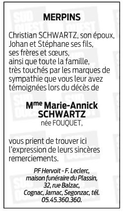 de Madame Marie-Annick SCHWARTZ née FOUQUET
