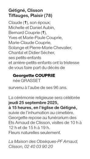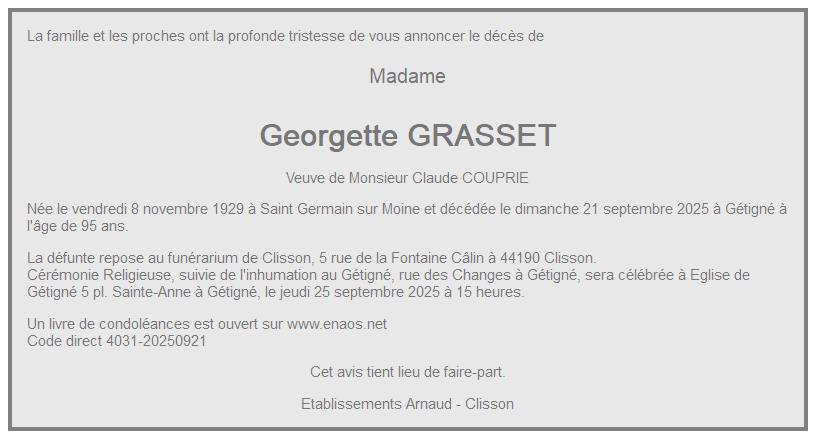 de Madame Georgette COUPRIE née GRASSET