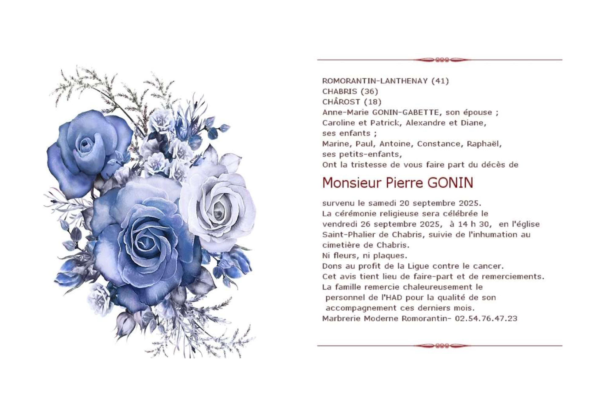 de Monsieur Pierre GONIN
