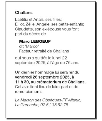 Cet espace « condoléances » est dédié à la mémoire de Monsieur Marc LEBOEUF.