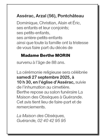 de Madame Berthe MORIN née MOREL