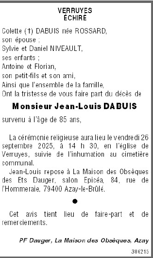 Cet espace « condoléances » est dédié à la mémoire de Monsieur Jean DABUIS.