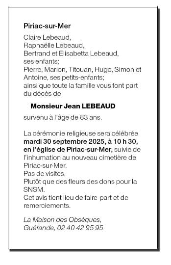 de Monsieur Jean LEBEAUD