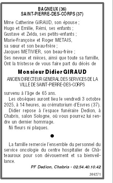Cet espace « condoléances » est dédié à la mémoire de Monsieur Didier GIRAUD.