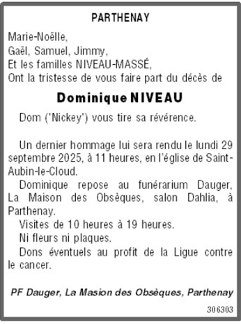 Cet espace « condoléances » est dédié à la mémoire de Monsieur Dominique NIVEAU.