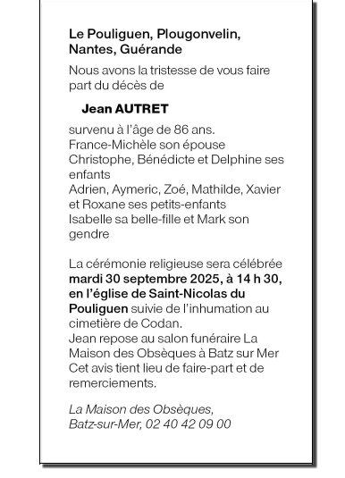 Décédé à Saint-Nazaire (44600) le mercredi 24 septembre 2025