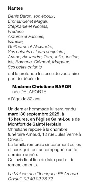 de Madame Christiane BARON née DELAPORTE