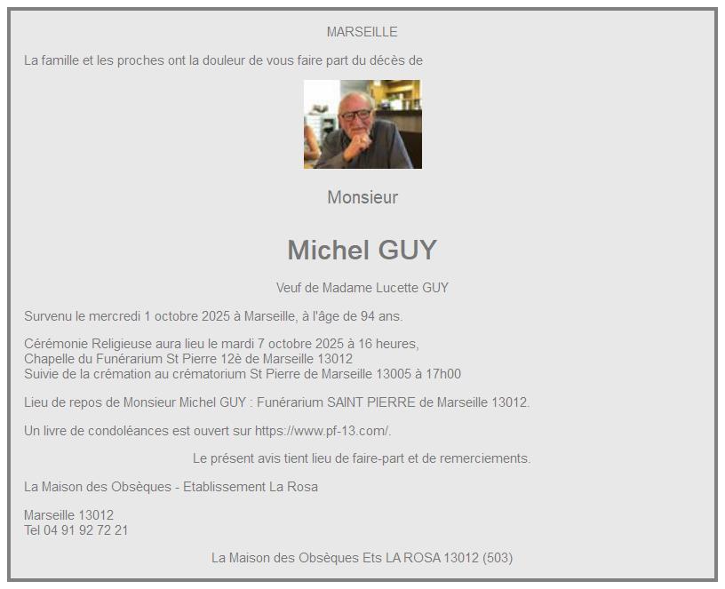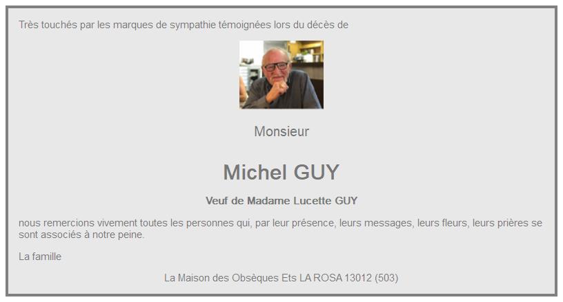 Cet espace « condoléances » est dédié à la mémoire de Monsieur Michel GUY.