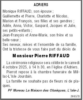 Cet espace « condoléances » est dédié à la mémoire de Monsieur Pierre RIFFAUD.