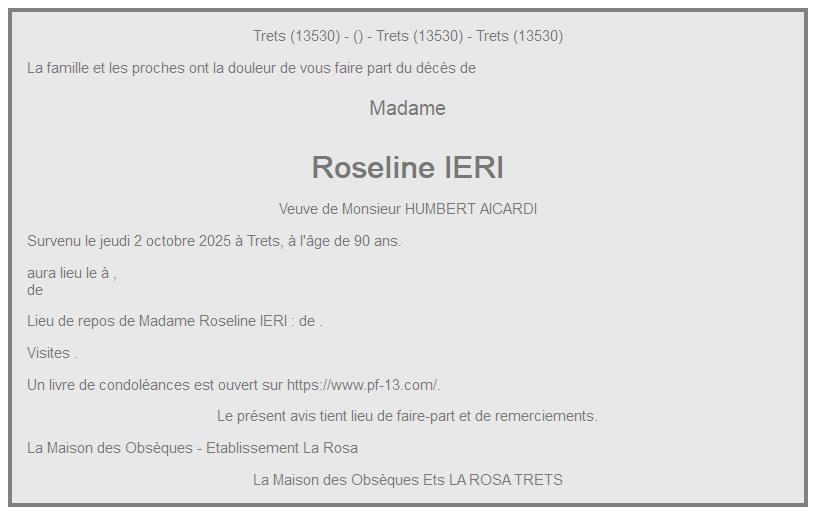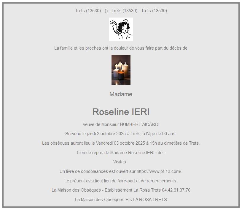de Madame Roseline AICARDI née IERI
