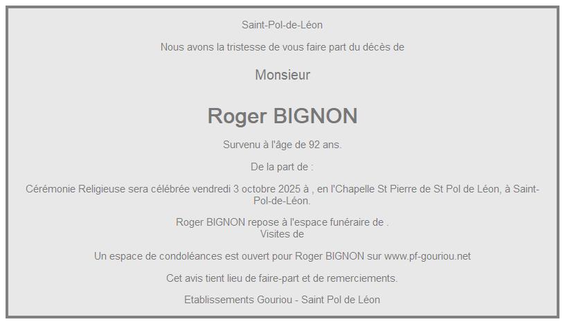 Cet espace « condoléances » est dédié à la mémoire de Monsieur Roger BIGNON.