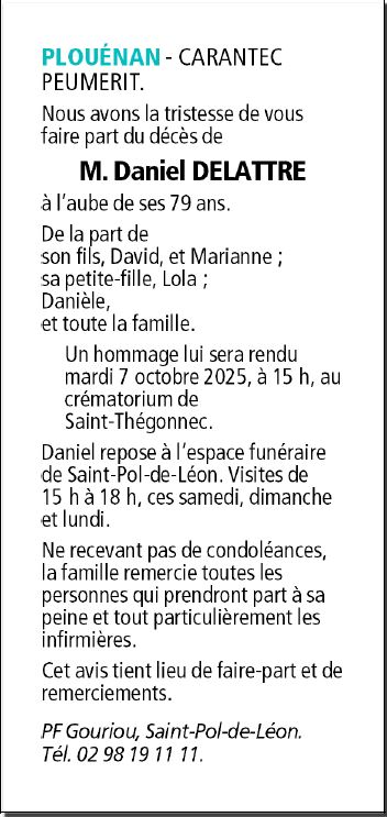 Cet espace « condoléances » est dédié à la mémoire de Monsieur Daniel DELATTRE.