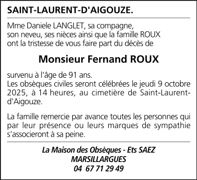 de Monsieur Fernand ROUX