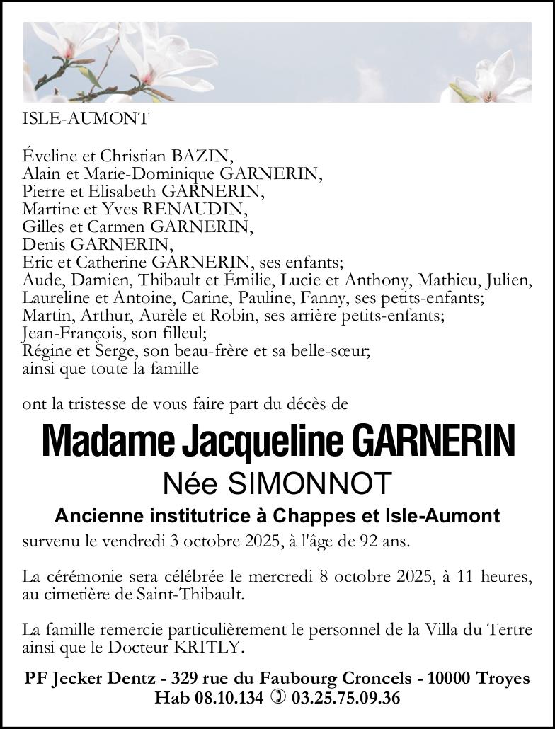 de Madame Jacqueline GARNERIN née SIMONNOT
