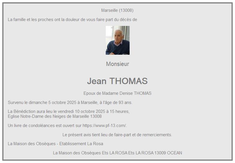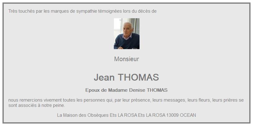 Cet espace « condoléances » est dédié à la mémoire de Monsieur Jean THOMAS.