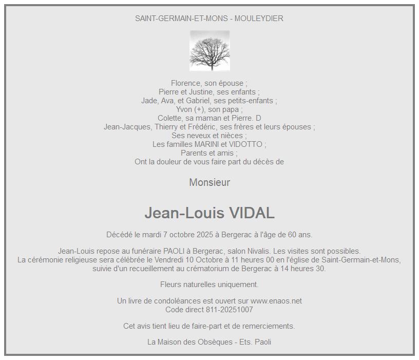 de Monsieur Jean-Louis VIDAL