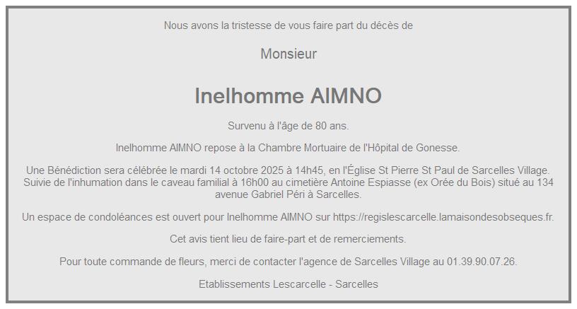 Cet espace « condoléances » est dédié à la mémoire de Monsieur Inelhomme AIMNO.