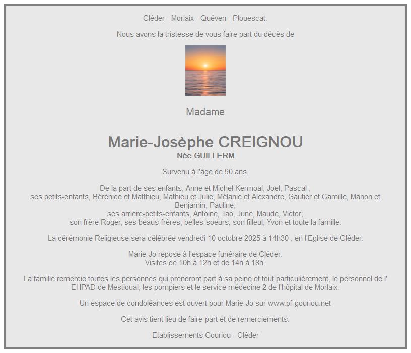 de Madame Marie-Josèphe CREIGNOU née GUILLERM