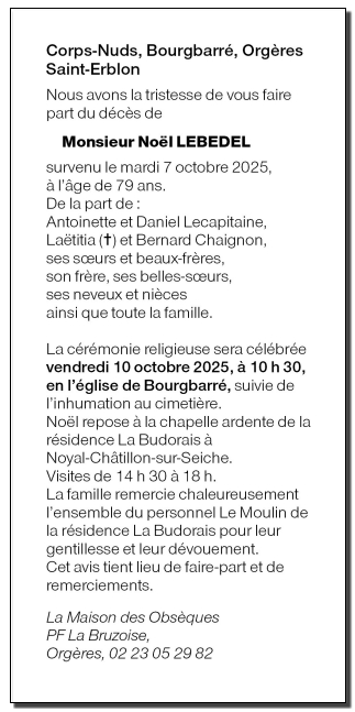 Cet espace « condoléances » est dédié à la mémoire de Monsieur Noël LEBEDEL.