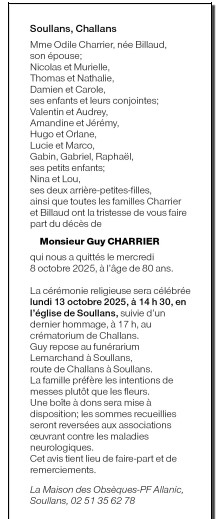 Cet espace « condoléances » est dédié à la mémoire de Monsieur Guy CHARRIER.