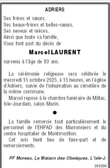 Décédé à Montmorillon (86500) le jeudi 9 octobre 2025