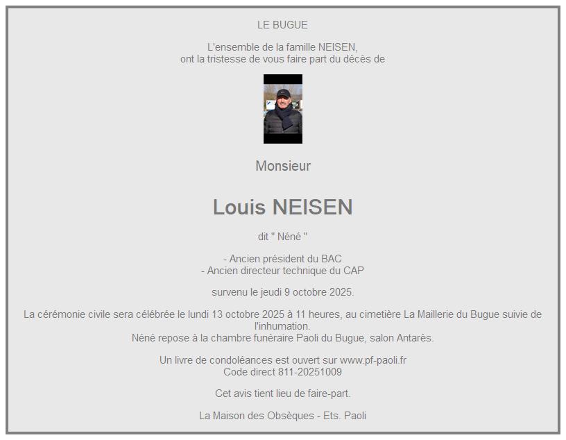 Cet espace « condoléances » est dédié à la mémoire de Monsieur Louis NEISEN.