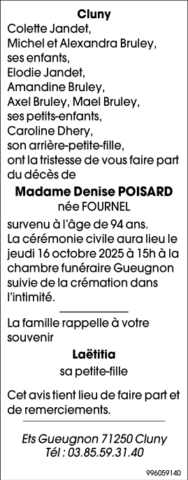 de Madame Denise POISARD née FOURNEL