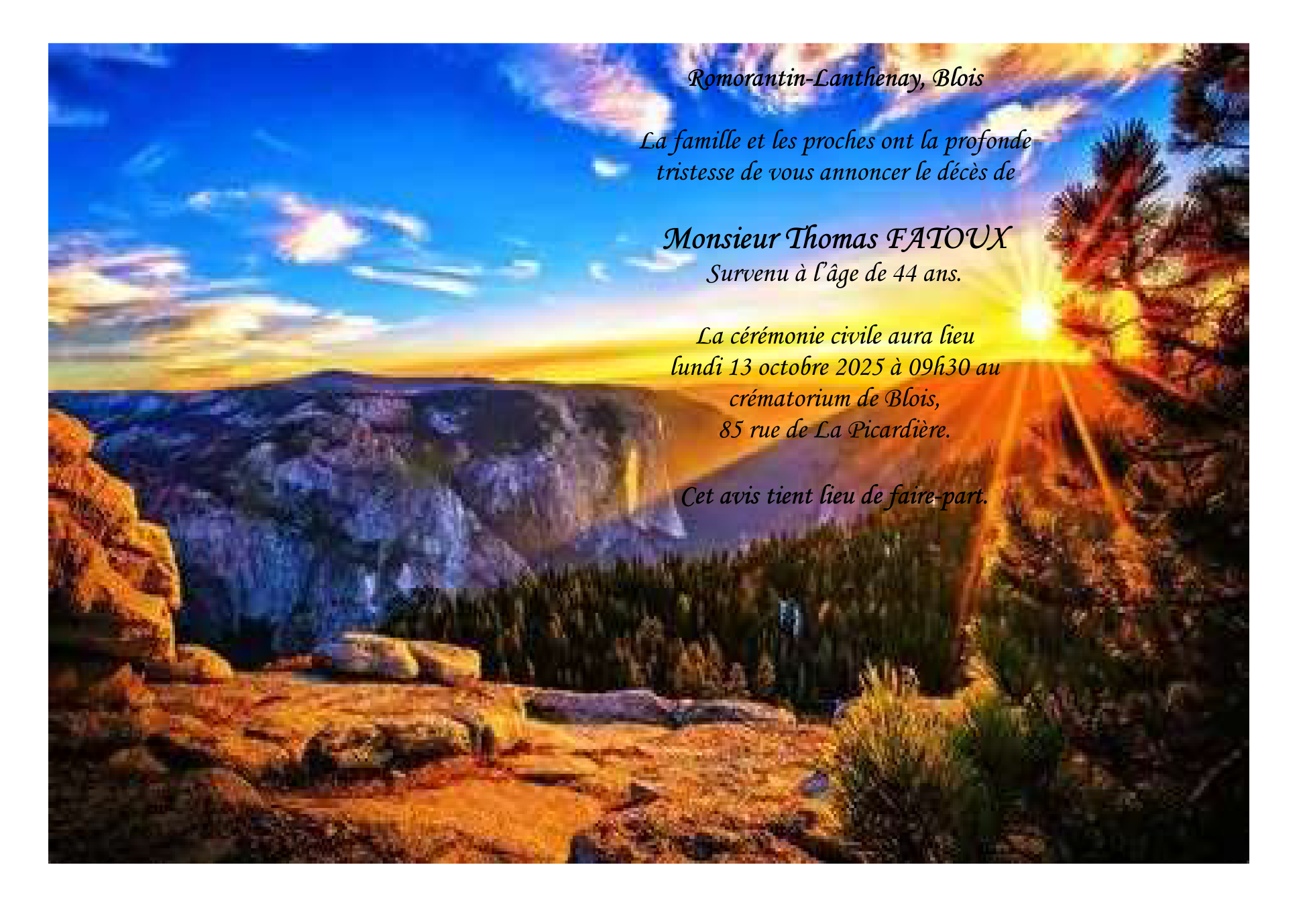 Cet espace « condoléances » est dédié à la mémoire de Monsieur Thomas FATOUX.