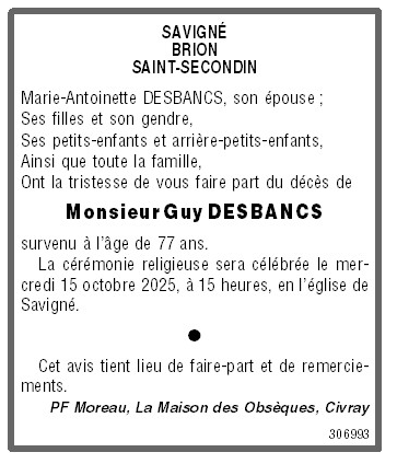 Cet espace « condoléances » est dédié à la mémoire de Monsieur Guy DESBANCS.