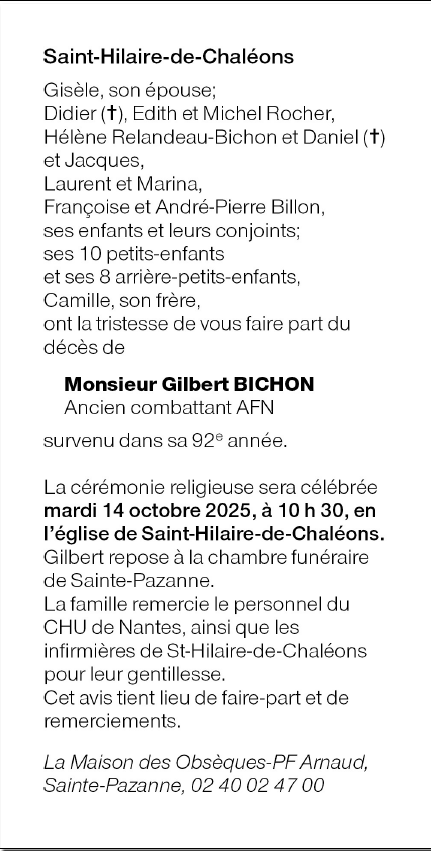 Cet espace « condoléances » est dédié à la mémoire de Monsieur Gilbert BICHON.