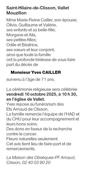 Décédé à Saint-Hilaire-de-Clisson (44190) le mardi 7 octobre 2025