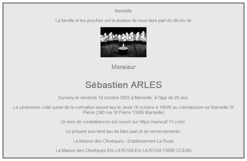 Cet espace « condoléances » est dédié à la mémoire de Monsieur Sébastien ARLES.